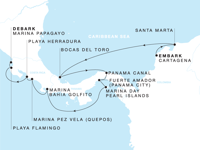 From colourful Cartagena, discover cloud forests and coffee farms in Santa Marta, one of Colombia’s most diverse natural regions. Discover Panama’s best-kept secret, Bocas del Toro, an archipelago alive with neon-coloured coral reefs and remote beaches. Advance into the Pacific through the rainforest-lined corridors and historic locks of the Panama Canal and arrive in Panama City, where Casco Viejo’s preserved streets evoke a grand past. Sample the yacht’s curated collection of water toys on a Marina Day in the Pearl Islands before sailing to Bahía Golfito, where you may experience the wonder of whale migration. Lush natural surroundings in Pez Vela, golfing in Playa Herradura, and a pink-sand beach day at Playa Flamingo round out this 12-night voyage that debarks in Marina Papagayo.