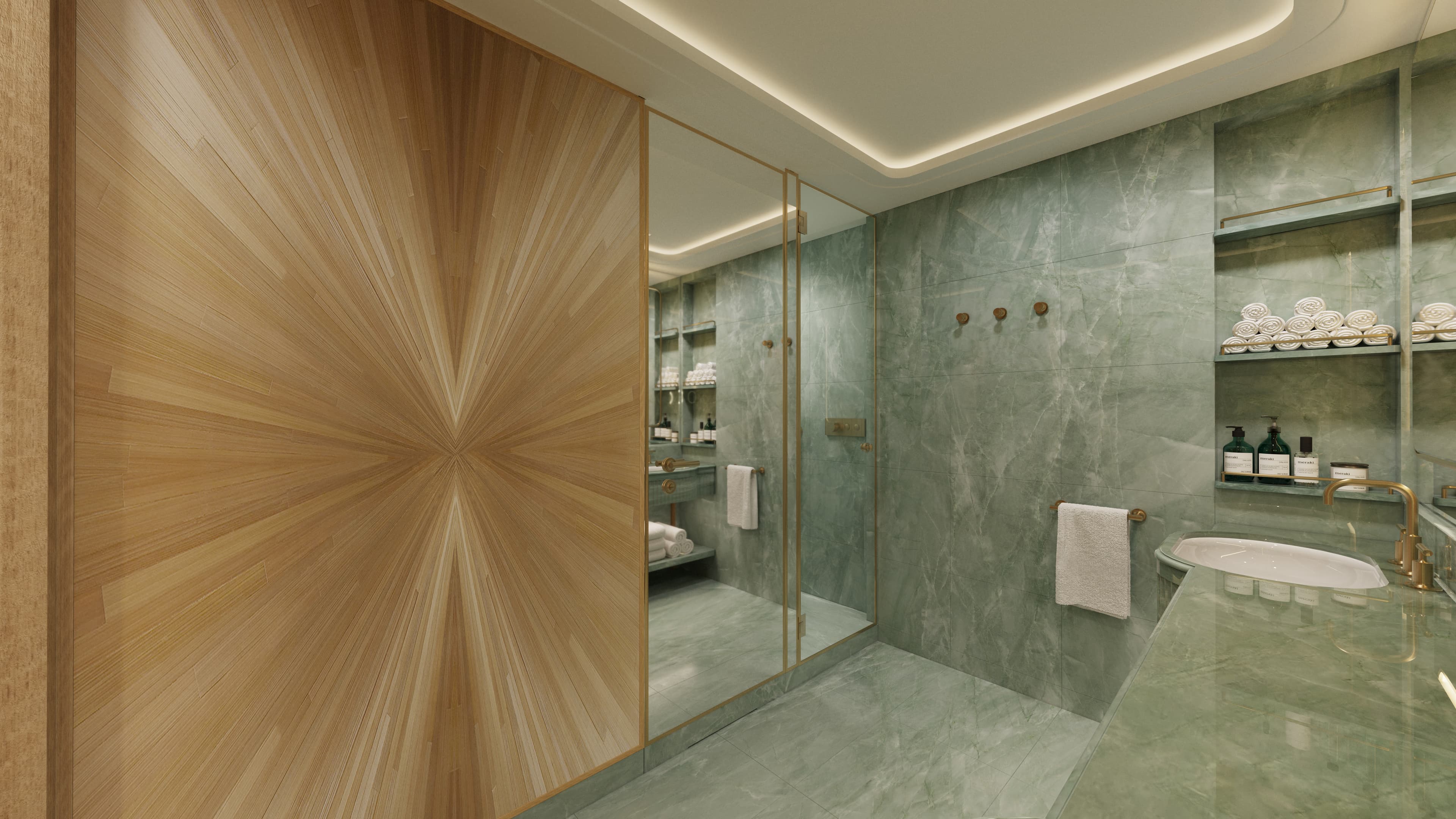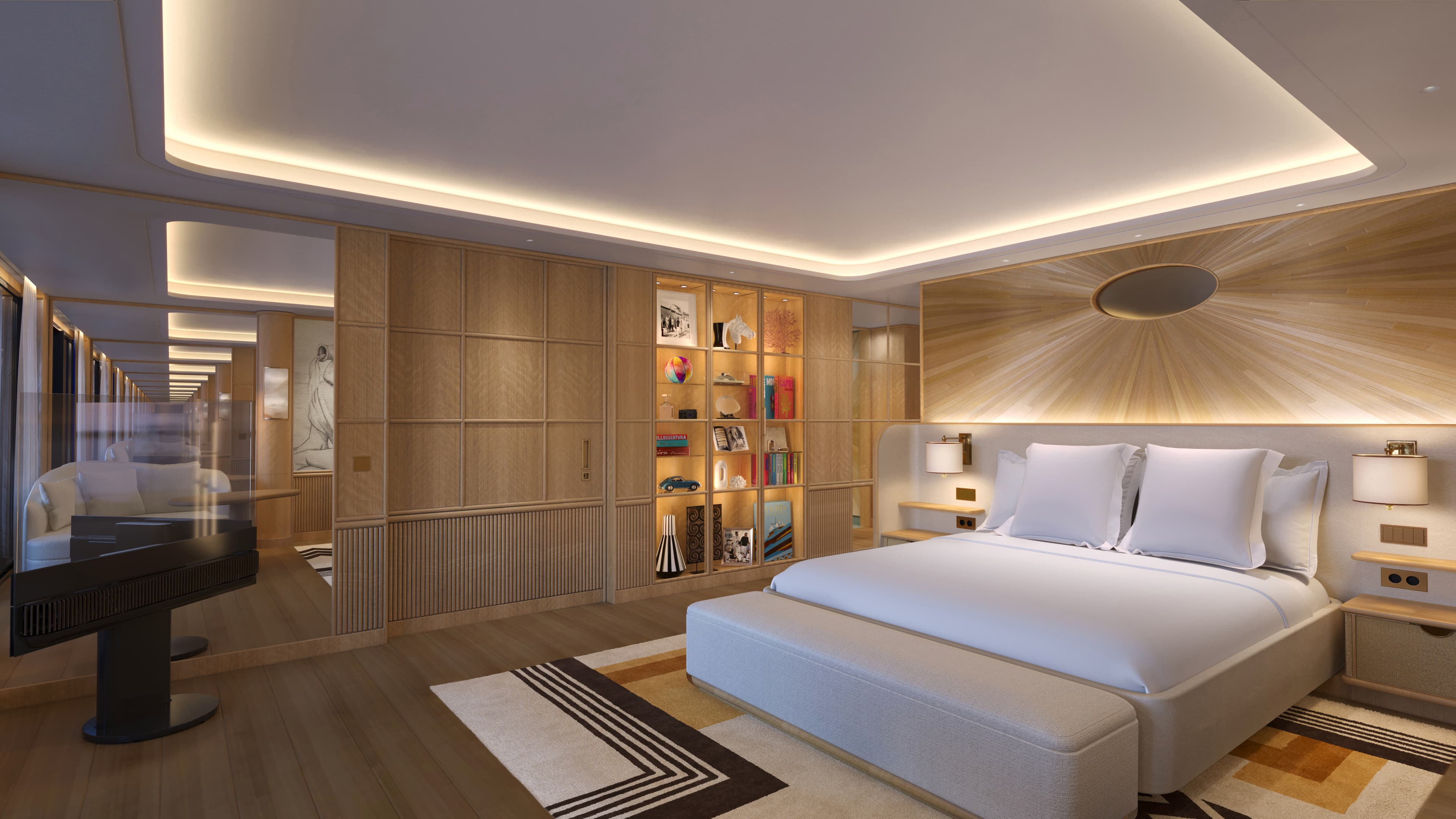 Perfect for two, our Seaview Mid Suites are beautiful retreats at sea, conveniently centralized within the yacht. Recharge in a tranquil, spacious bedroom with a double-vanity marble bathroom and enjoy endless views from your private terrace.
