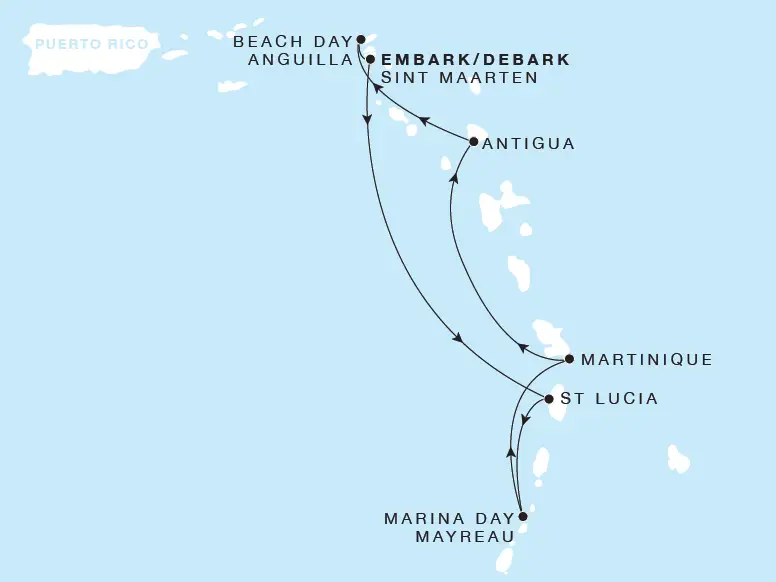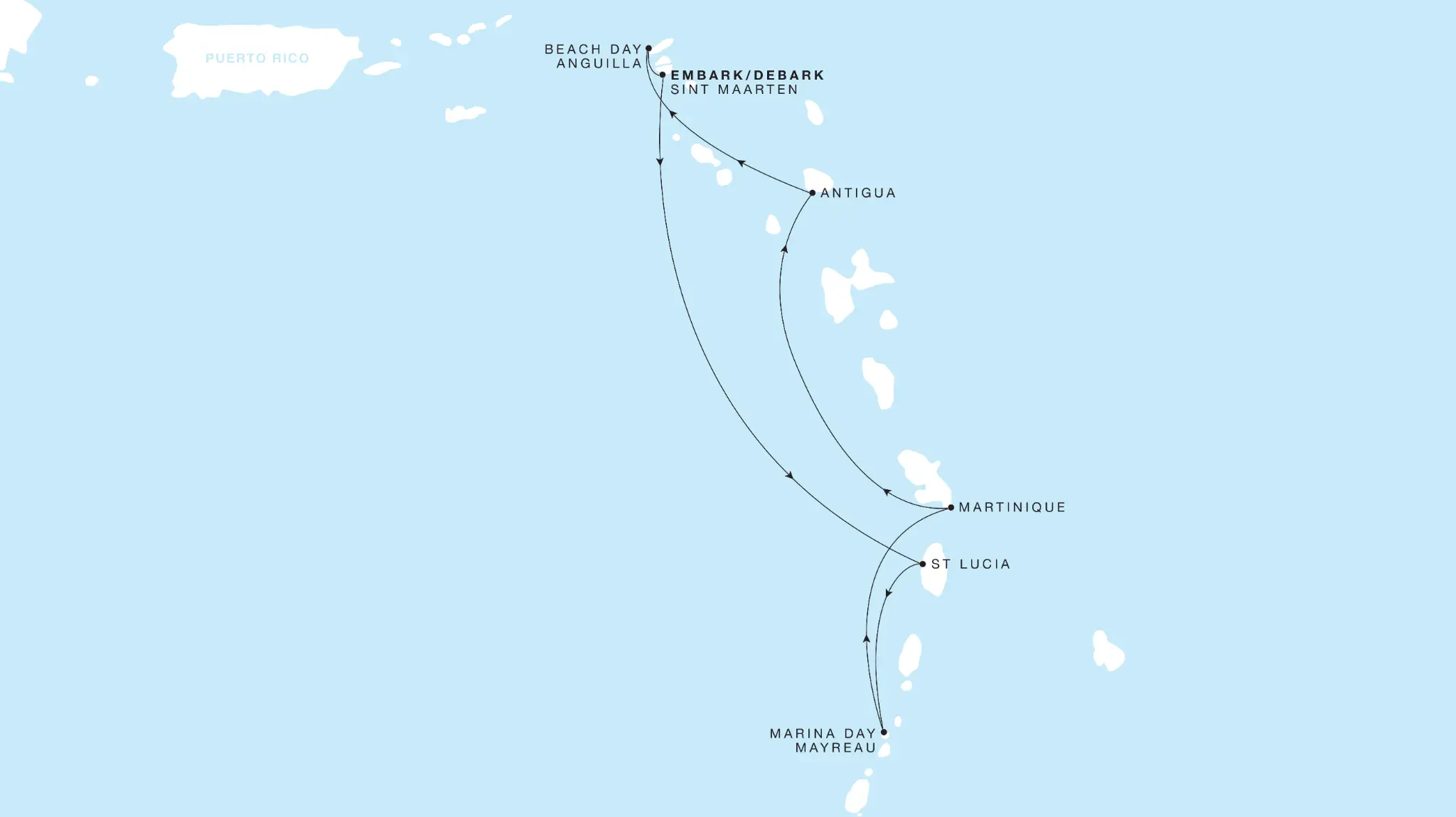 Lively Sint Maarten bookends this idyllic circuit through the Lesser Antilles. Discover the colonial charm of Martinique, immerse yourself in Antigua’s rich yachting heritage, and explore St Lucia’s lush coastlines, with time to unwind in Mayreau’s turquoise coves and Anguilla’s sugar-white sands.